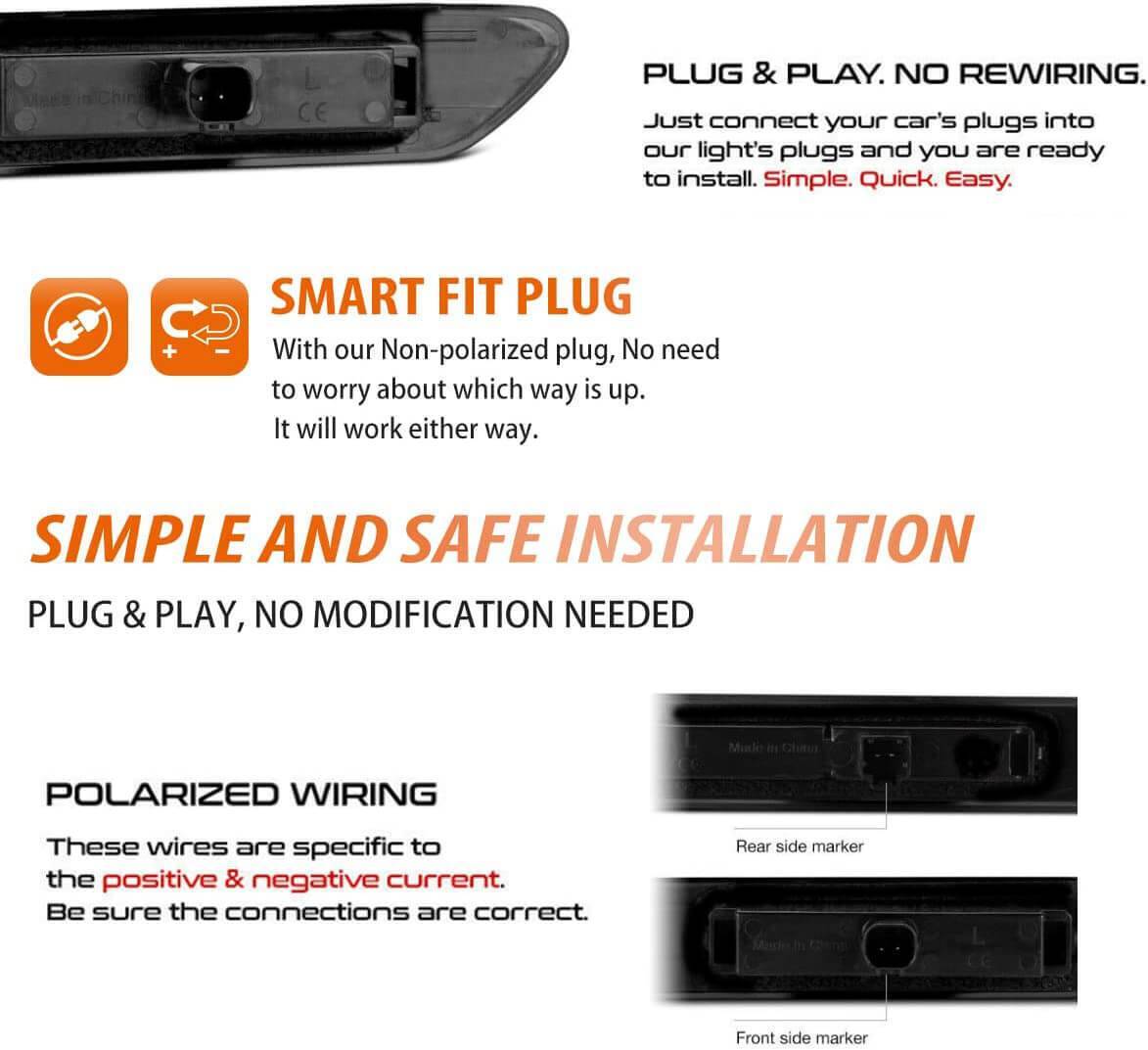 Feux de position latéraux avant et arrière à LED à lentille noire pour Acura TL Base 2004-2008