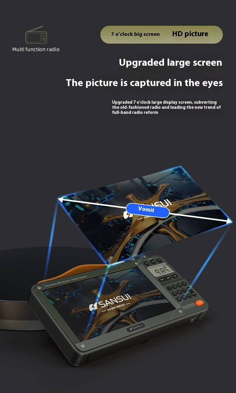 Radio pour personnes âgées à domicile Haut-parleur Bluetooth à bande complète Lecteur vidéo HD