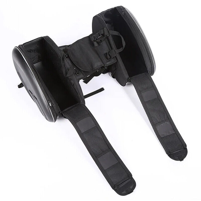 [Easy to install]: It can be fast, easy, and safely fixed on your motorcycle. The unique third seat belt fixes the bag under the motorcycle seat.