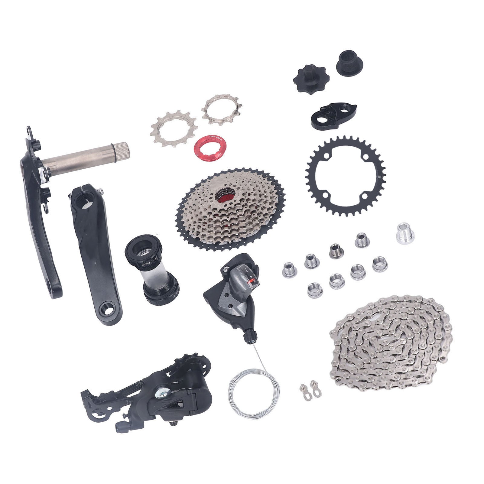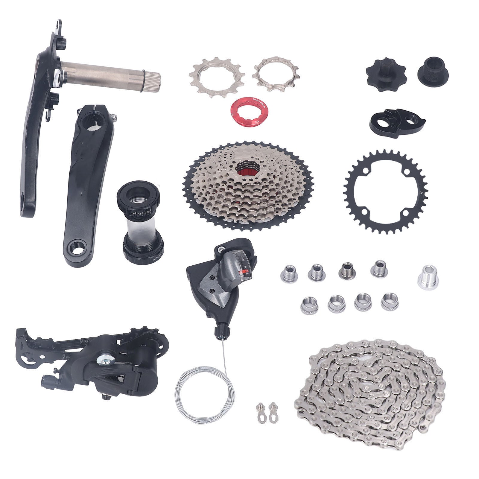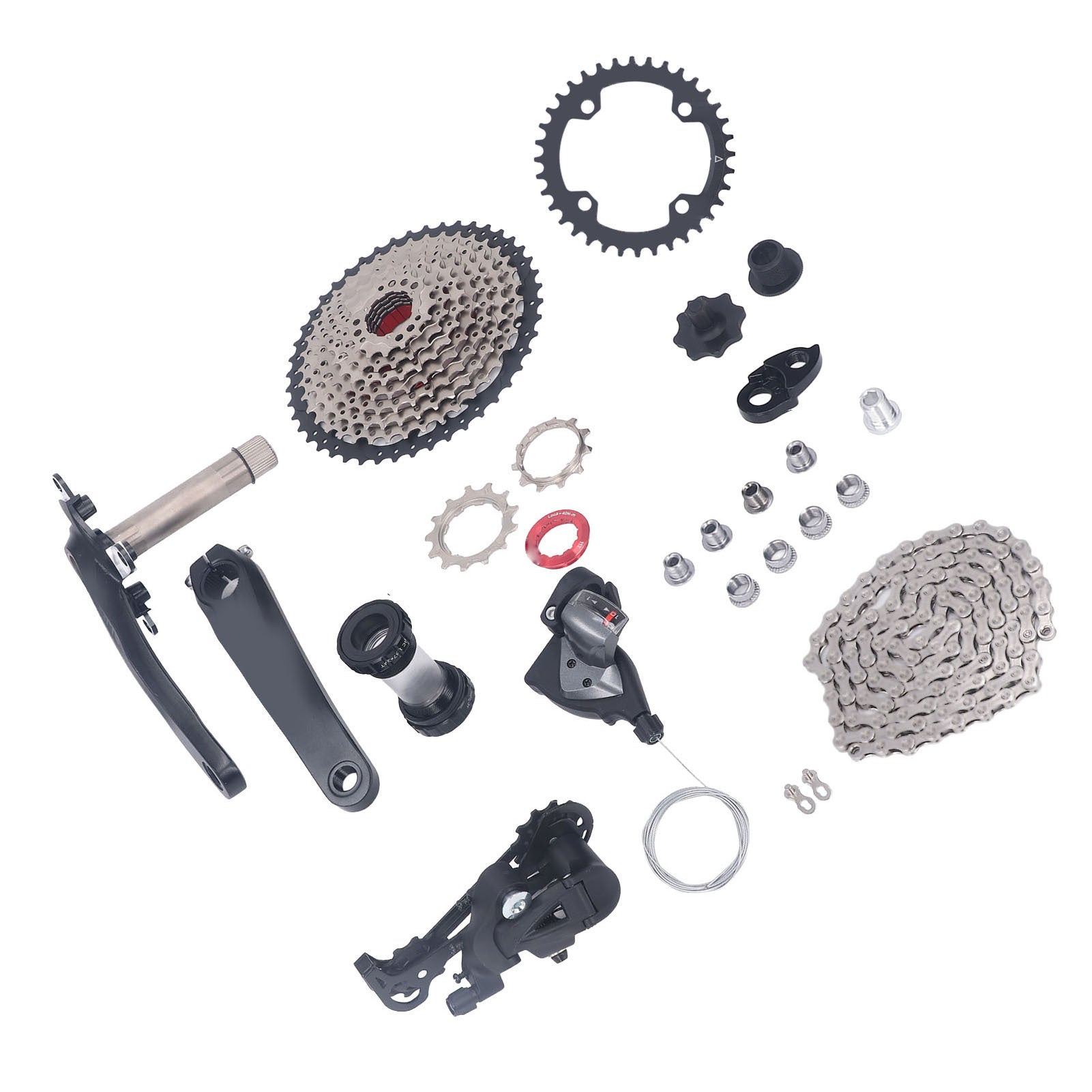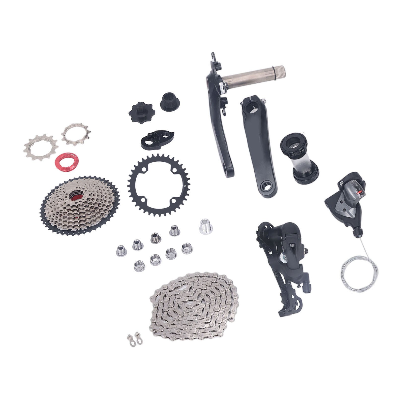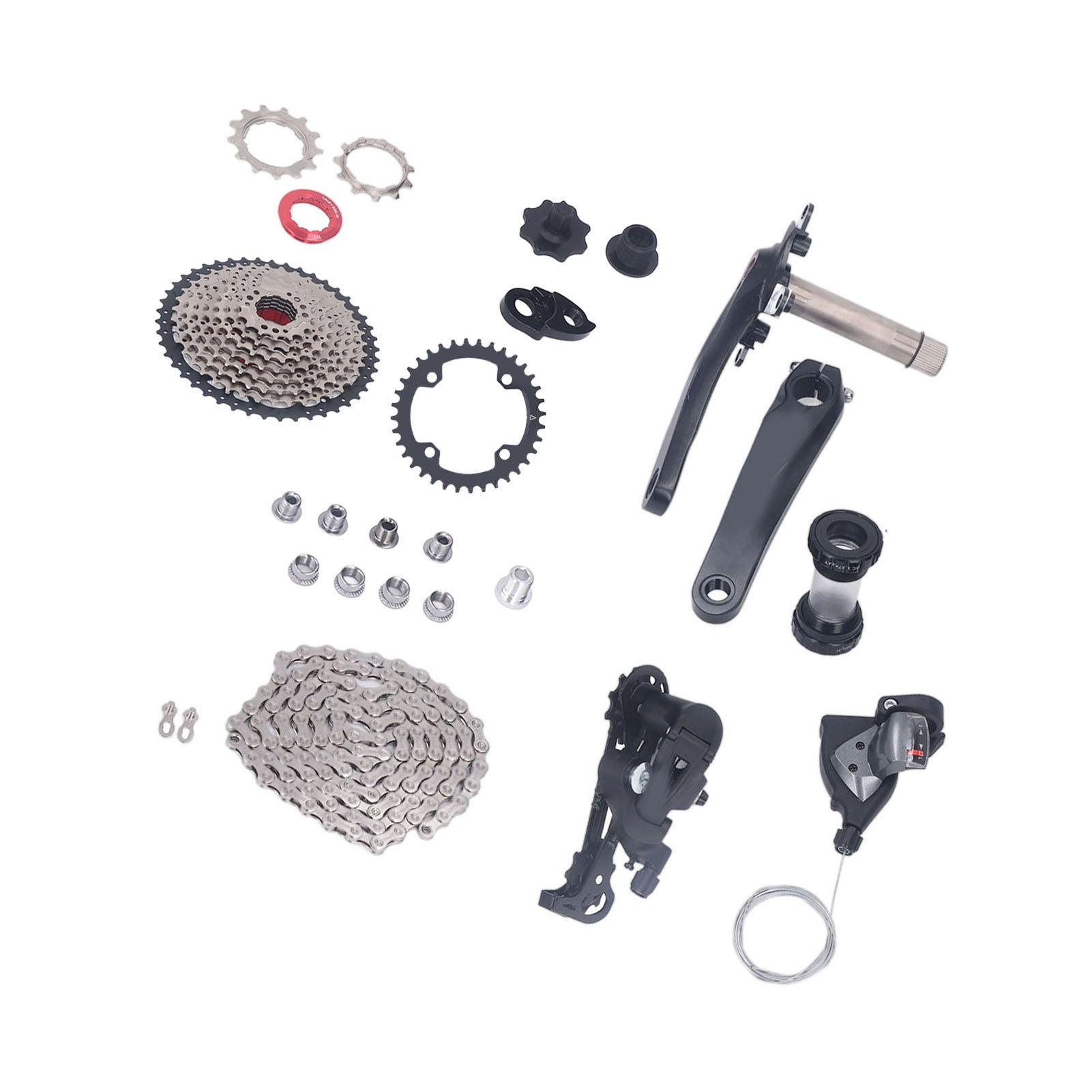 1 x Cassette3 x Cassette Accessory1 x Tail Hook 1 x Tail Hook Screw 1 x Front Thumb Shifter1 x Rear Thumb Shifter1 x Chain 2 x Chain Buckle 1 x Chain Box 1 x Left Crank 1 x Right Crank 1 x Bottom Bracket10 x Crank Accessories 1 x Crankset