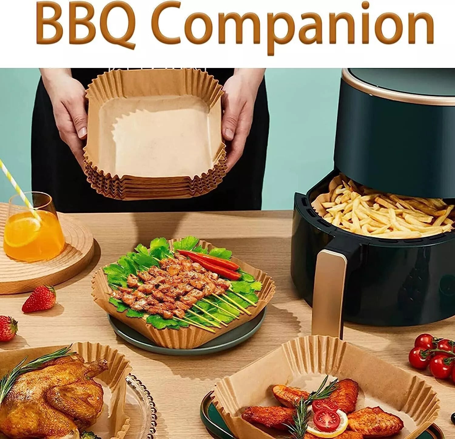 ãWidely Usedã air fryer liners suitable for air fryer, microwave, oven, steamer, cooker, etc. The paper liners can be applied for baking, roasting, frying, or serving food, suitable for home baking, camping, BBQ, summer party, and so on, lightweight and practical