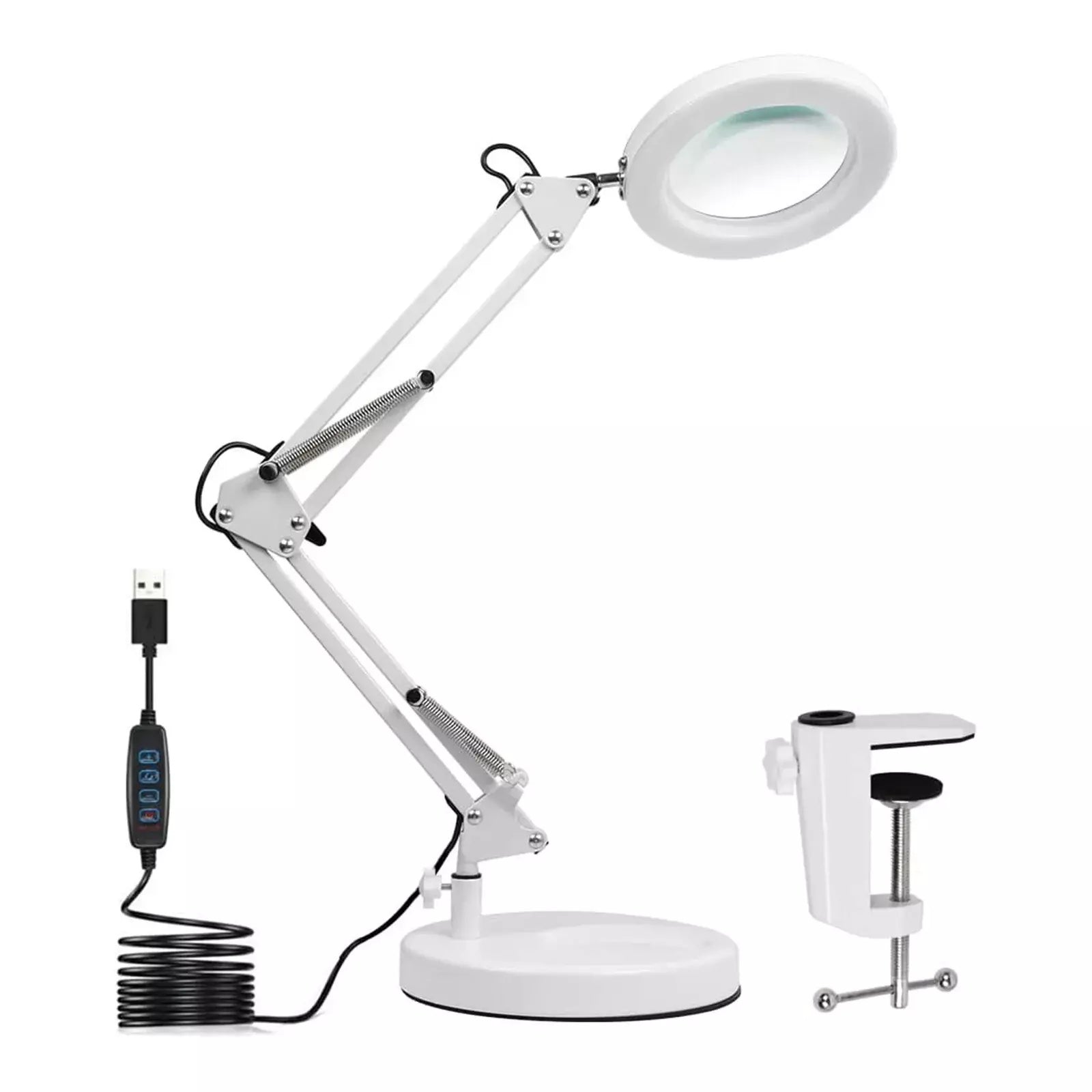 2-IN-1 Desk Clamp Lamp - This magnifying lamp comes with a base and a metal clip, you can use it as a desk lamp or a clamp, it can be easily installed without any tools. The max clamping distance of the clamp is 2.1in, as long as your workbench has an exposed flat edge, it can be installed to use. Such as a desk, workbench, shelf, or table.