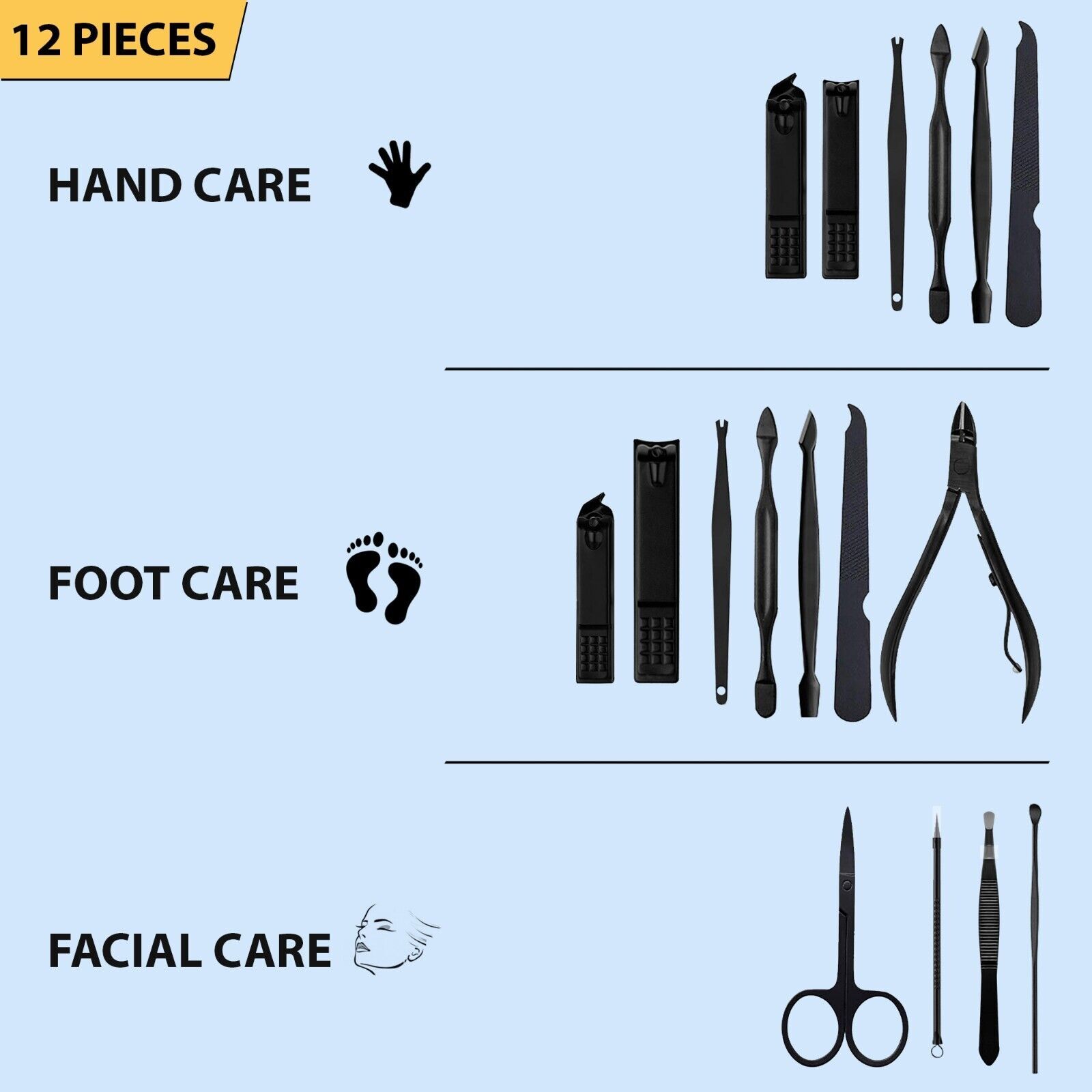 12 Pieces Manicure Pedicure Nail Care Set Cutter Clippers Tool Kit For Women Men