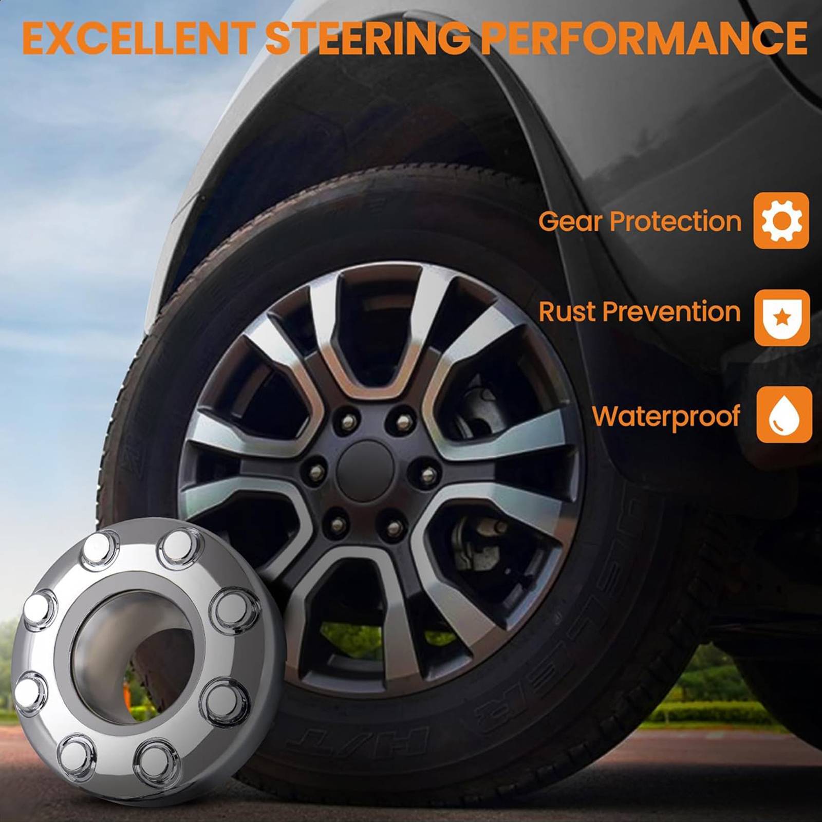 【Durable Hubcaps】 Hubcaps can protect lubricants and gears with rust and water resistance, exhibits more precise steering action and better steering performance. Improves the cooling effect of the brake system.
