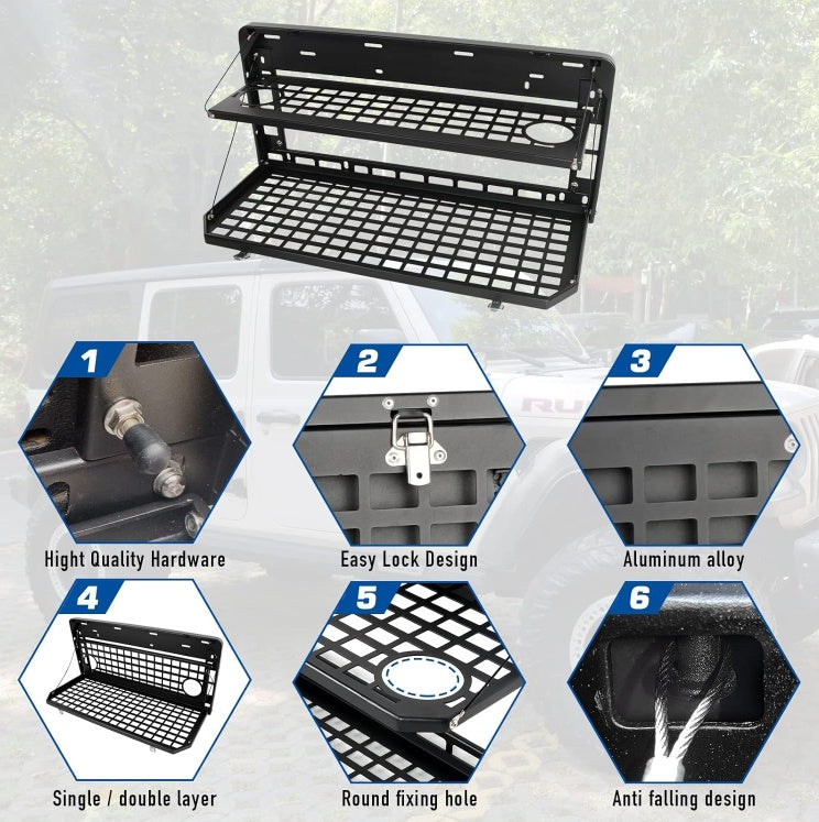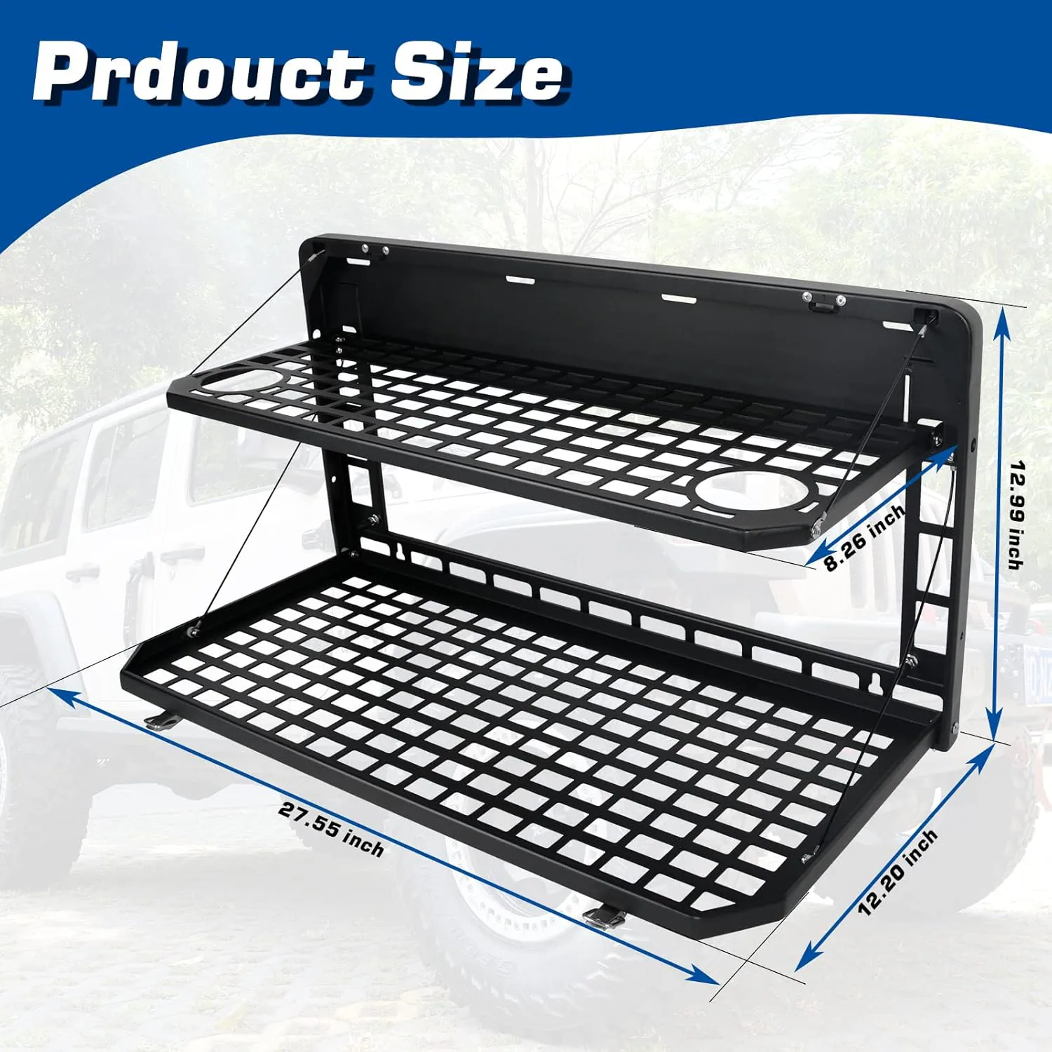 2-Tier Tailgate Table Rear Foldable Storage Cargo Rack Outdoor Camping Desk For 2007-2022 Jeep Wrangler JK&JL 4 Door