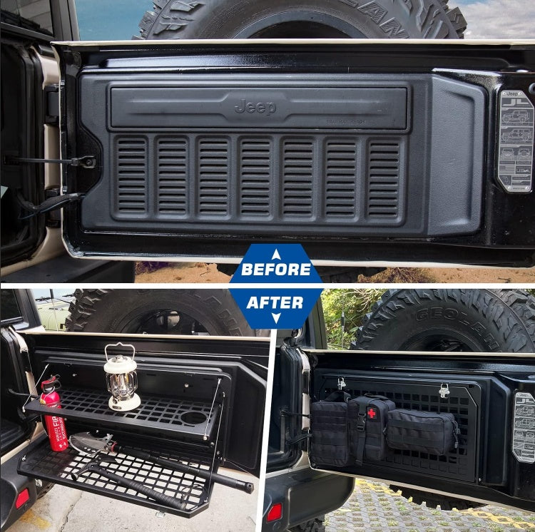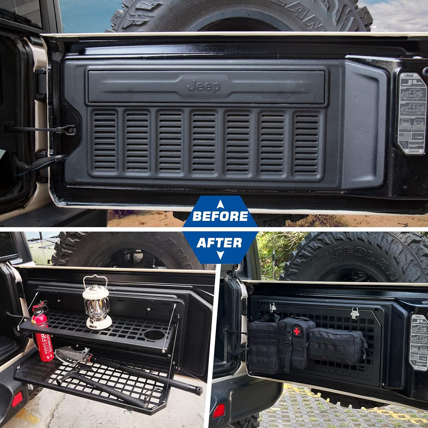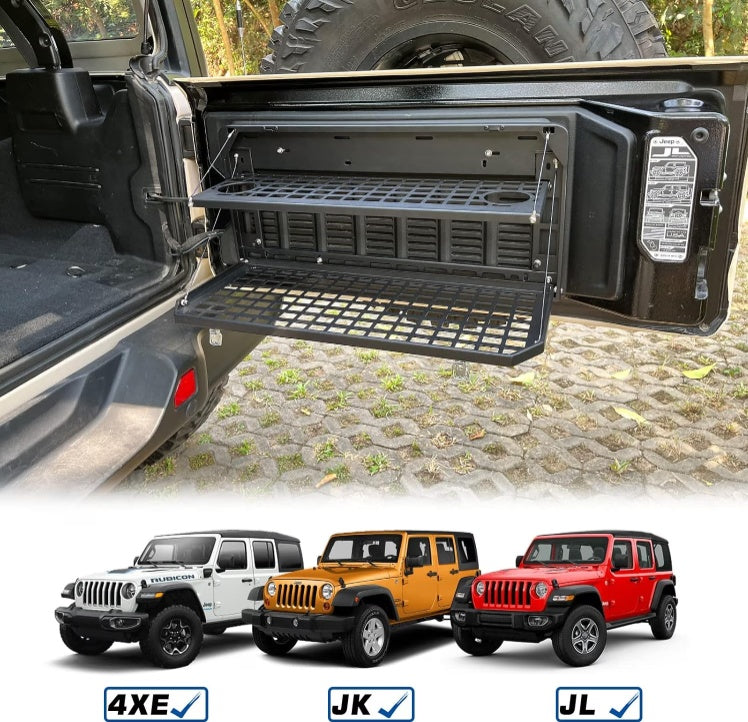 【Perfect Fitment】Outdoor Camping Storage Tailgate Table suitable for Jeep Wrangler JK JKU & JL JLU 2007-2022 4 Door. (Will not fit with stock subwoofer on jk models)