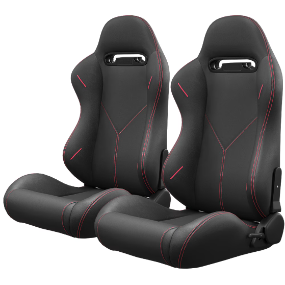 Product Name: 2PC Universal Barrel Racing Seat Red Stitching Red PVC Leather Tiltable Carbon Fiber Exterior Leather Backrest with Adjuster Slider (Seat Bracket Not Included) 1 Box of 2 Pieces