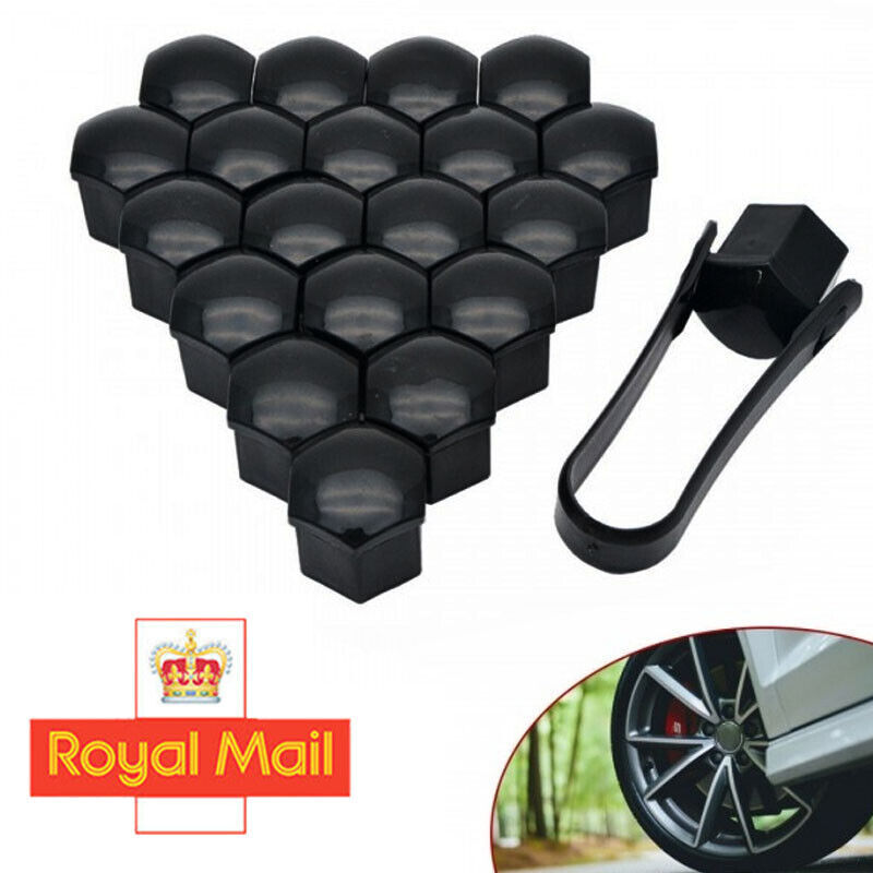 20x 17mm Black Plastic Wheel Nut Bolt Covers Caps Universal For Any Car Locking