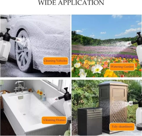 Portability: Enjoy washing your car and watering your garden anytime, anywhere. No car wash machine connection required. The foam sprayer is perfect for use in home garages, parking lots, gardens, and terraces.