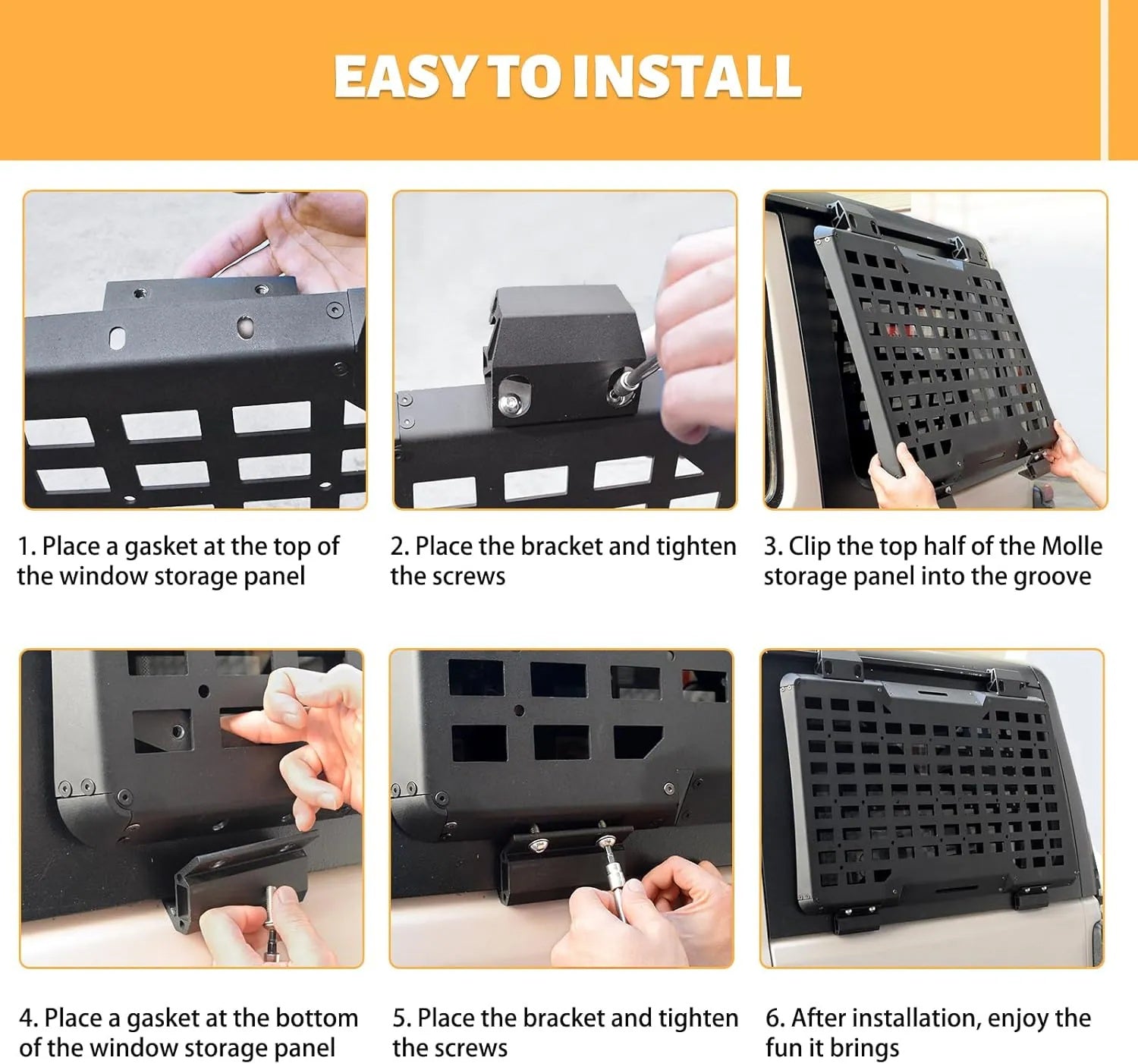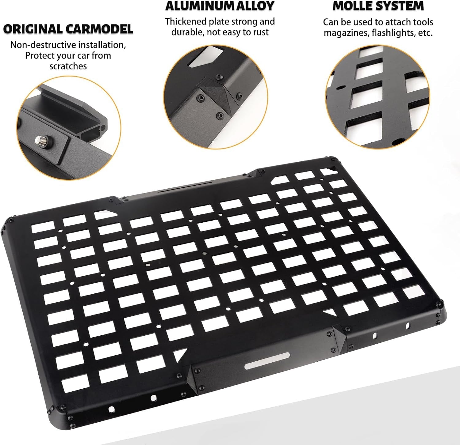 Quality construction: Made from durable aluminum alloy construction, the rear window molle panel features a black coat finish and is specially treated to resist scratches and blemishes.