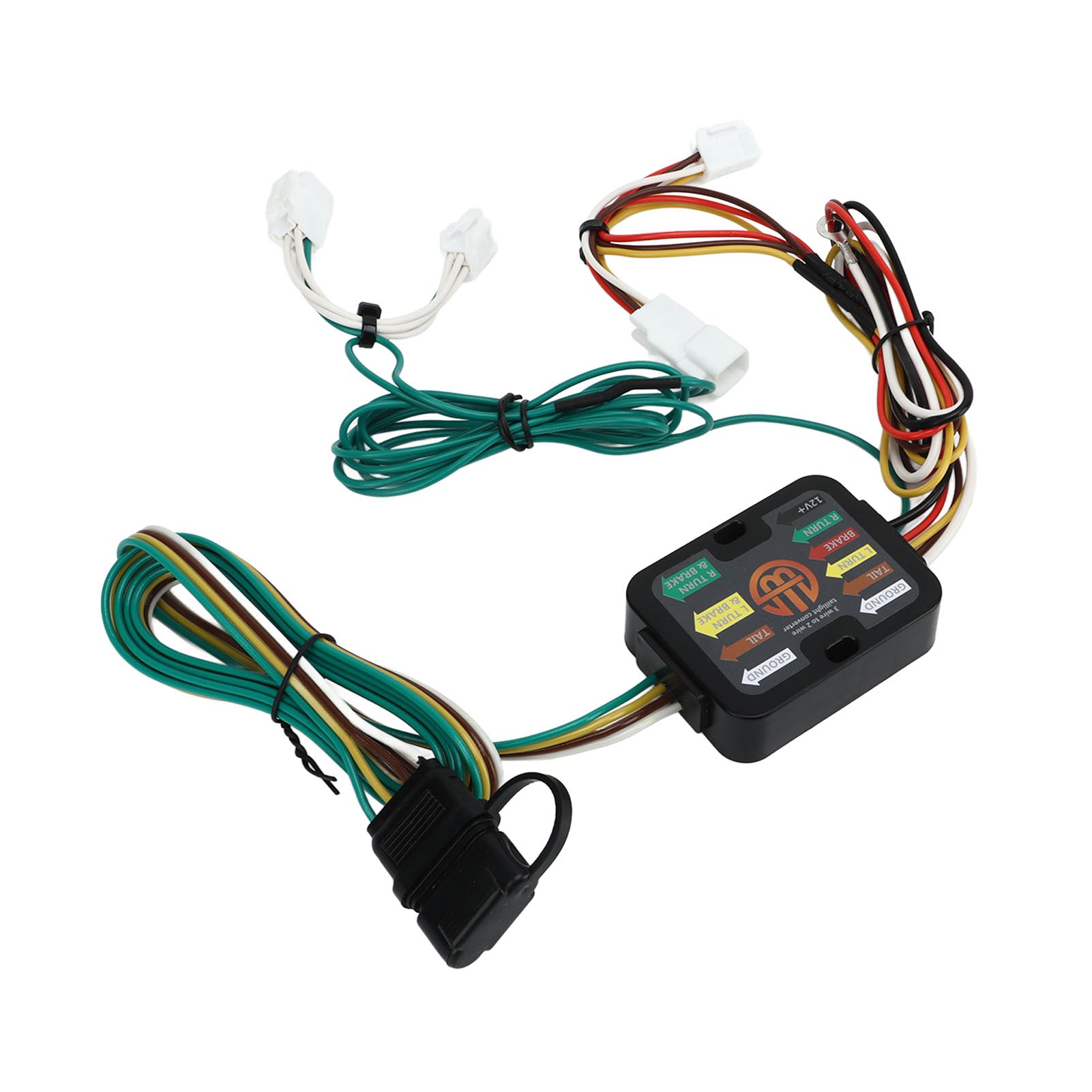 Item Type: Trailer Wiring HarnessMaterial: ABS and wiring harnessPart Number: 56434Product Description: If your vehicle is not equipped with wiring for towing trailers, this wiring harness is the ideal solution. The custom wiring harness (also known as a T connector) is a simple plug and play electrical device that plugs into the vehicle's electrical system and provides a standard universal trailer wiring connection. This is accomplished by plugging into the taillight assembly using two or more vehicle specific OEM compatible connectors, eliminating the need for cutting, splicing and soldering during installation. The custom wiring harnesses are vehicle specific and while they do not apply to all vehicles, they do provide one of the fastest, easiest and safest methods for towing vehicles. This special plug-in harness provides a 4 way flat connector socket and is designed to customize the harness to fit certain years fit for RAV4 (to verify your vehicle's compatibility, see application information). It comes with all the necessary wiring components to create a reliable trailer wiring connection, as well as a dust cover to keep the connector clean when not in use. You have a picture in your mind of your next destination, maybe a boat landing at your favorite fishing spot, maybe a campground overlooking one of nature's masterpieces, maybe the next big construction site. However, turning that dream into reality takes more than just daydreaming. It requires solid connections and the right amount of power. The wiring harness uses the industry's most advanced technology for easy installation, providing a durable electrical connection for your tow hookup setup.Application:Fit for RAV4 2019‑2020