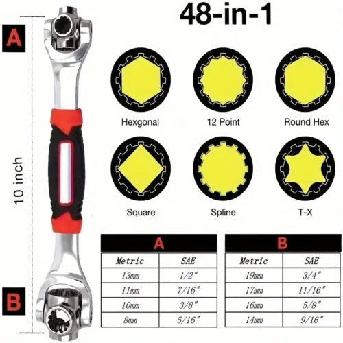 【48 Tools In One Socket Tiger Wrench】-- The Unique Revolutionary Tooth Design Allows You To Do Both Standard And Metric Sizes- Simply Flip The Tool Around And You Have More Sizes! No More Lugging Around Heavy Tool Boxes.
