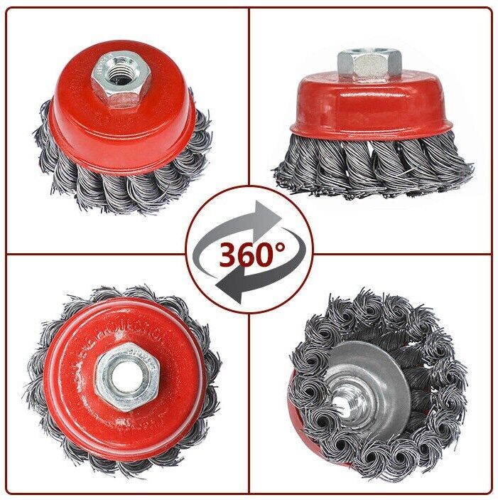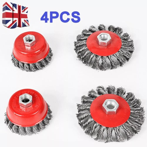 4Pcs Twist Knot Semi Flat Wire Wheel Cup Brush Set Kit For Angle Grinder M14 UK