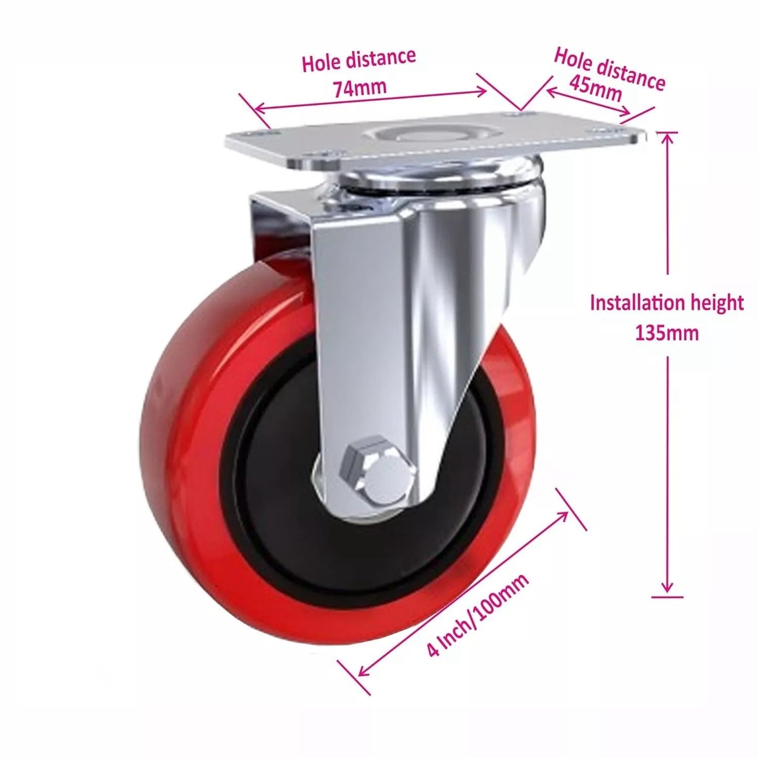 4x 100mm 700KG Heavy Duty Large Rubber Swivel Castor Wheels For Furniture - UK