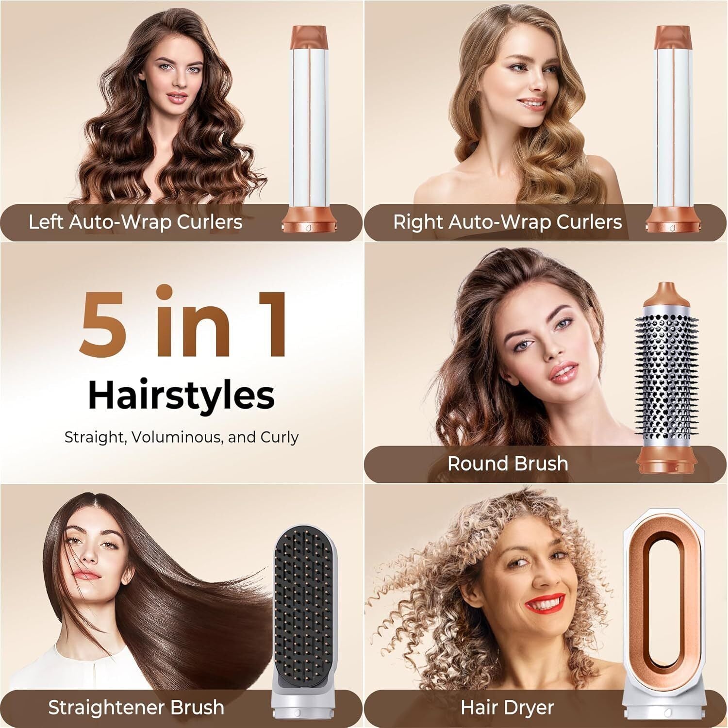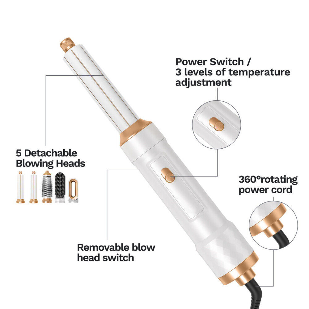 5 IN 1 Pro Air Wrap Blow Hair Styler Curler Straightener Hot Air Comb Brush Gift