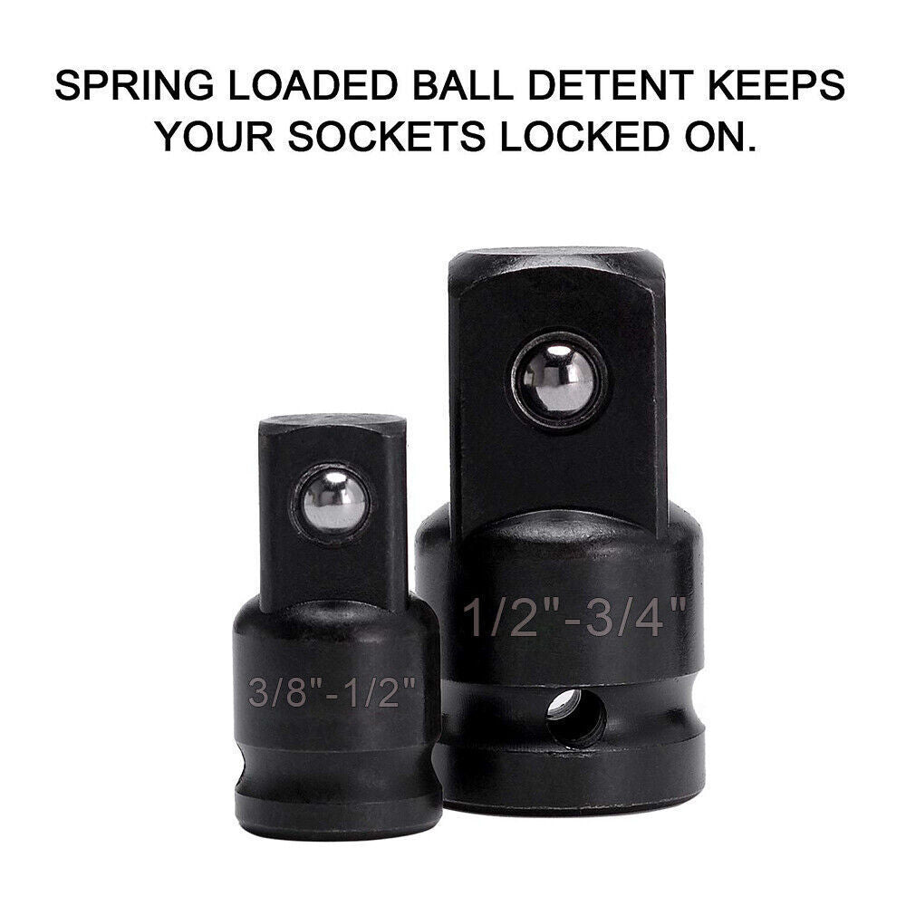 1. Made from heat-treated forged chrome-molybdenum steel material, the impact adapter kit is ultra-hard to reduce wear, enhance torque and provide superb rust resistance. It can withstand the increased torque generated by impact tools and ensures maximum durability.