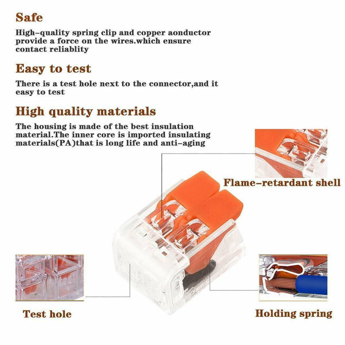 When connecting wires, you don't have to worry about twisting between them. Due to the use of PC insulation material, these lever nuts are safer than other methods of connecting wires.