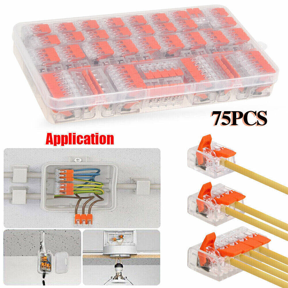 75x For Wago 221 Electrical Connectors Wire Block Clamp Terminal Cable Reusable