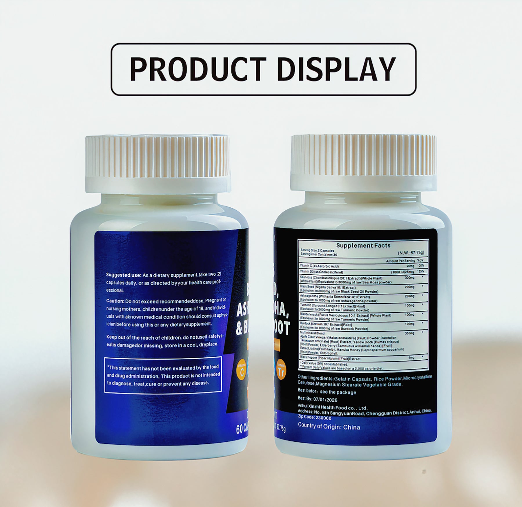 Sea Moss capsules with black seed have been combined and the results are amazing.Abronikey has officially created the world's most inclusive 15 in 1 raw sea moss,black seed capsules, ashwagandha extract,bladderwrack root, Burdock roots,turmeric curcumin capsules. The Raw Sea Moss and Black Seed Oil Capsules You've Been Looking For - Abronikey provides 6 full-dose products in one,containing a full lrish Sea Moss Powder,Black SeedPowder,Ashwagandha Extract,Bladderwrack Powder, and Burdock Root Powder in a convenient 2 capsule dosage! Finally, irish sea moss wildcrafted, black seed, ashwagandha powder, bladderwrack herb and burdock root pills have been packed into one convenient solution that's quick and easy to take. Introducing the Abronikey Blend -Sea Moss Pills,Black Seed Oil Pills,Ashwagandha Root,Bladderwrack Capsules and Burdock Root Capsules that contain 10+powerhouse ingredients,turmeric curcumin capsules,Apple Cider Vinegar,ChlorophyII, Manuka Honey, and more! These sea moss bladderwrack burdock root capsules are alternatives to sea moss gummies, black seed oil gummies, and ashwagandha gummies for men. Not usual sea moss raw organic,wildcrafted sea moss gel or ashwagandha supplements. A Powerful Healthy Cell Growth Supplement -Abronikey is overflowing with potent Sea Moss Supplement, Black Seed Oil capsules, Aswagandhada capsules, Burdock Root, Bladderwrack and turmeric powder. Clear out those countless supplements in your supplement cabinet,and replace it with just one seamoss powder, black seeds oil, aswagandhada capsules, and burdock supplement 15-in-1 formula from Abronikey. We made lrish seamoss bladderwrack burdock capsules better by adding black seed. |