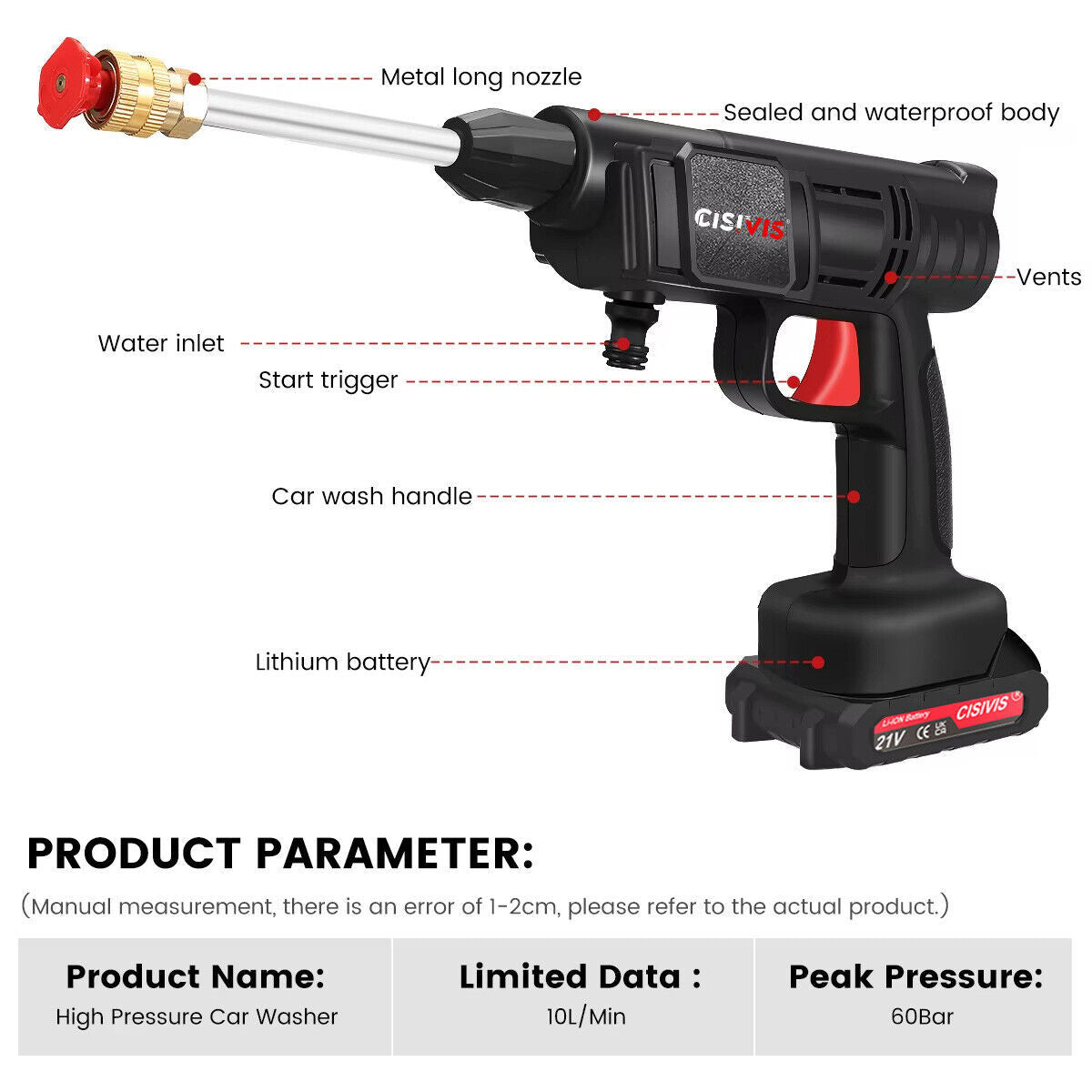 Darüber hinaus stellen wir auch eine Düse mit Waschmittelbehälter (ca. 350 ml) zur Verfügung, die zur täglichen Reinigung verwendet werden kann. Schnelles Schaum, feiner und gleichmäßiger Schaum, leicht zu waschen Das Auto. Im Vergleich zu herkömmlichen Druckwaschmaschinen ist unsere schnurlose Power -Waschmaschine leicht und tragbarer.