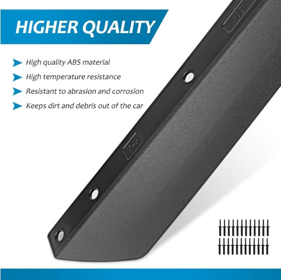 - WIDENING DESIGN - It can solve the problem that the original fender flare are not wide enough after replacing large-size tires, and at the same time, it can effectively prevent sand and stone from splashing and scratching the original paint.