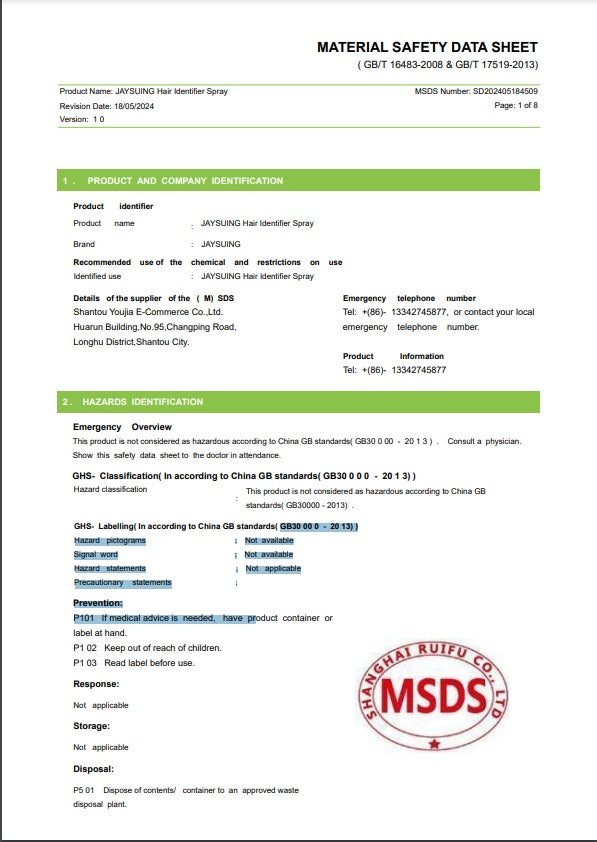 - 【Effect Description】:Hair Identifier Spray creates cool skin that reduces friction