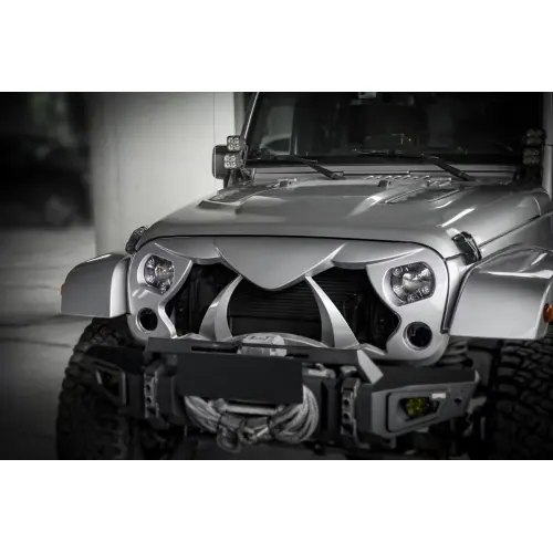 Application: Halloween grille compatible with 2007-2017 Jeep Wrangler Rubicon Sahara JK Unlimited 2 & 4 Door. (Note: will not fit on 2018 JL models)