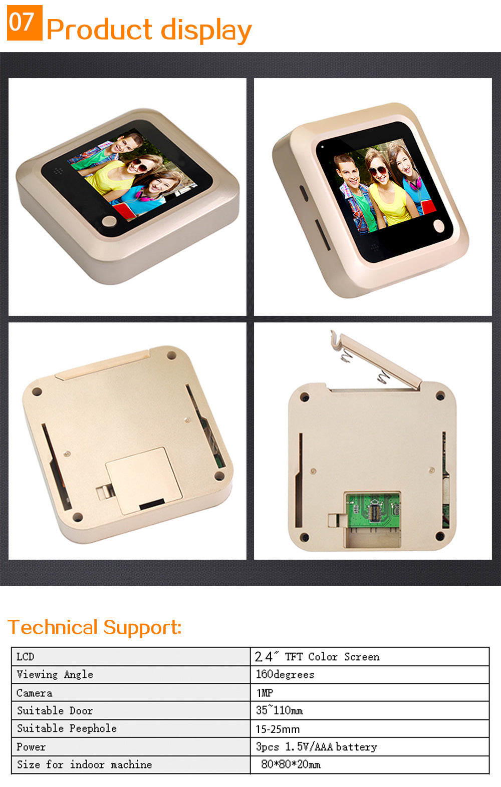 Hidden Smart Electronic Peephole Wired Anti-Theft Door Mirror Video Doorbell