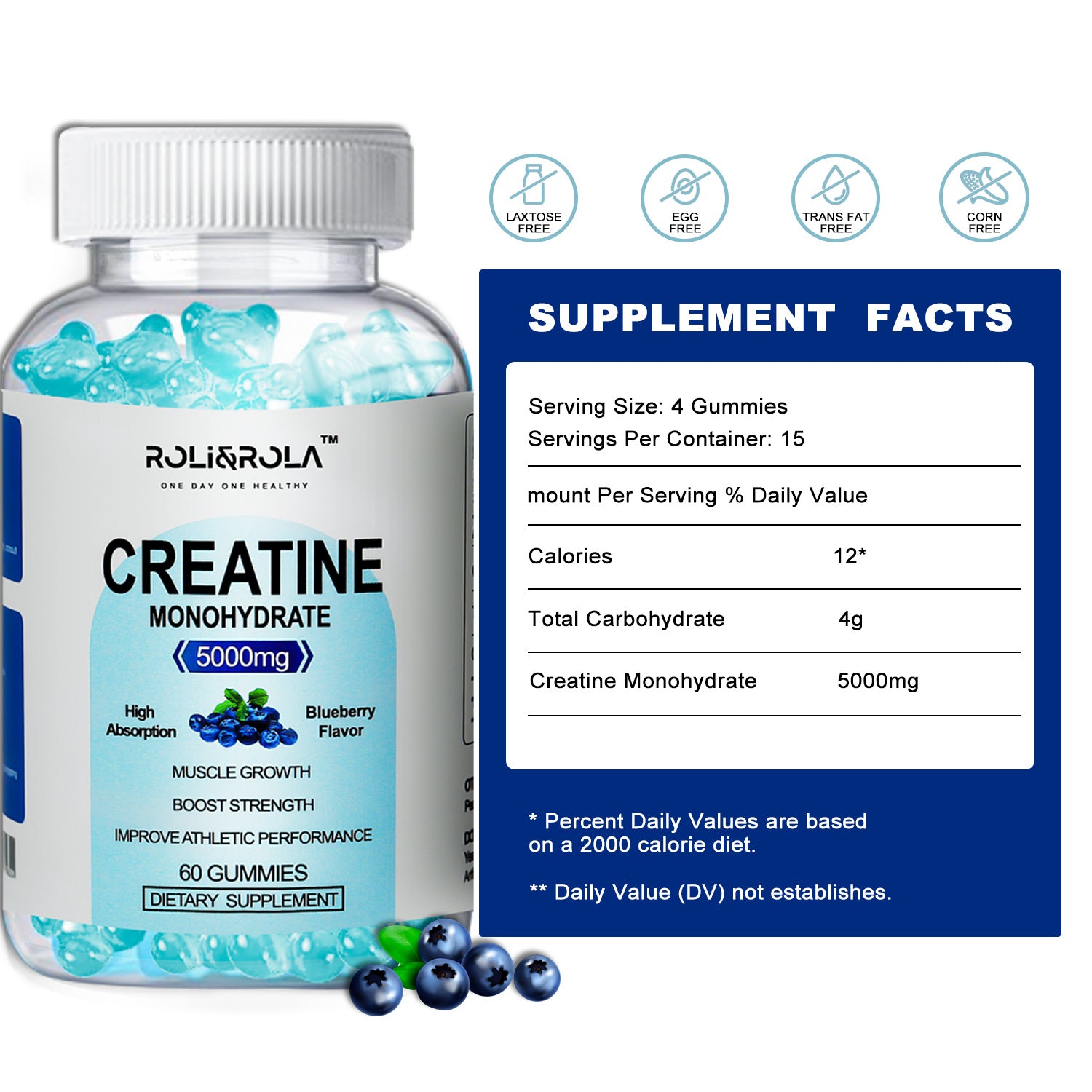 Delicious Taste: The blueberry-flavored gummies provide a tasty way to consume creatine, making it more enjoyable, especially for those who dislike traditional powder or capsule forms. Efficient Absorption: Gummies can be quickly absorbed through the oral mucosa, increasing the bioavailability of creatine and helping users achieve energy boosts and muscle enhancement more rapidly. High-Quality Ingredients: Made with high-quality creatine monohydrate, ensuring purity and safety without artificial colors or additives, making it suitable for long-term use.