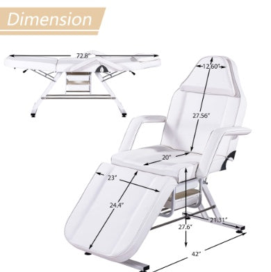 - MULTIPURPOSE: This 3-section bed and chair combination works as a full-body massage bed, facial chair, or even as a tattoo chair that can recline to various positions as needed.