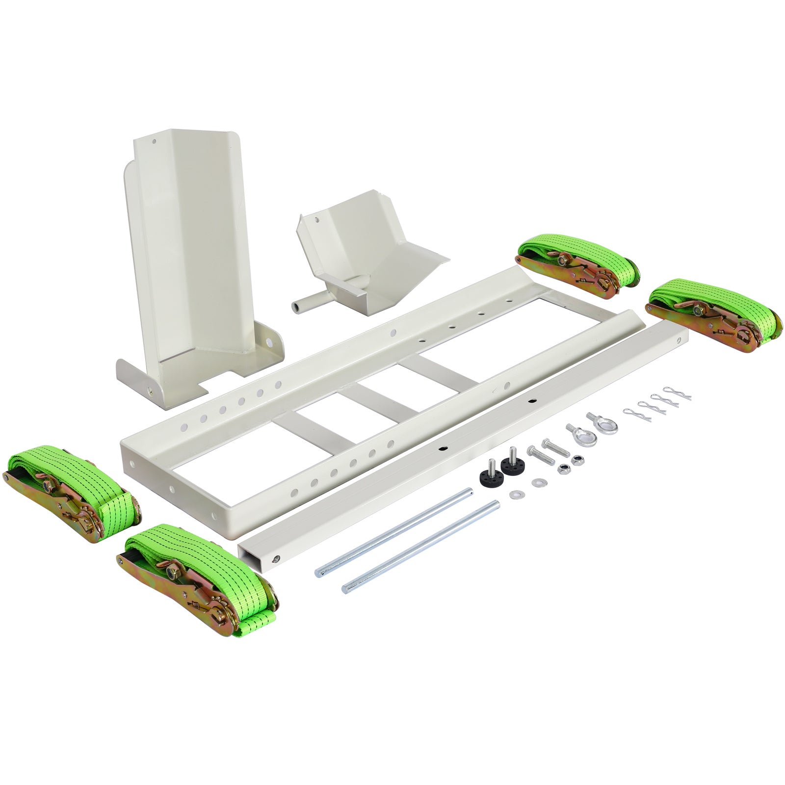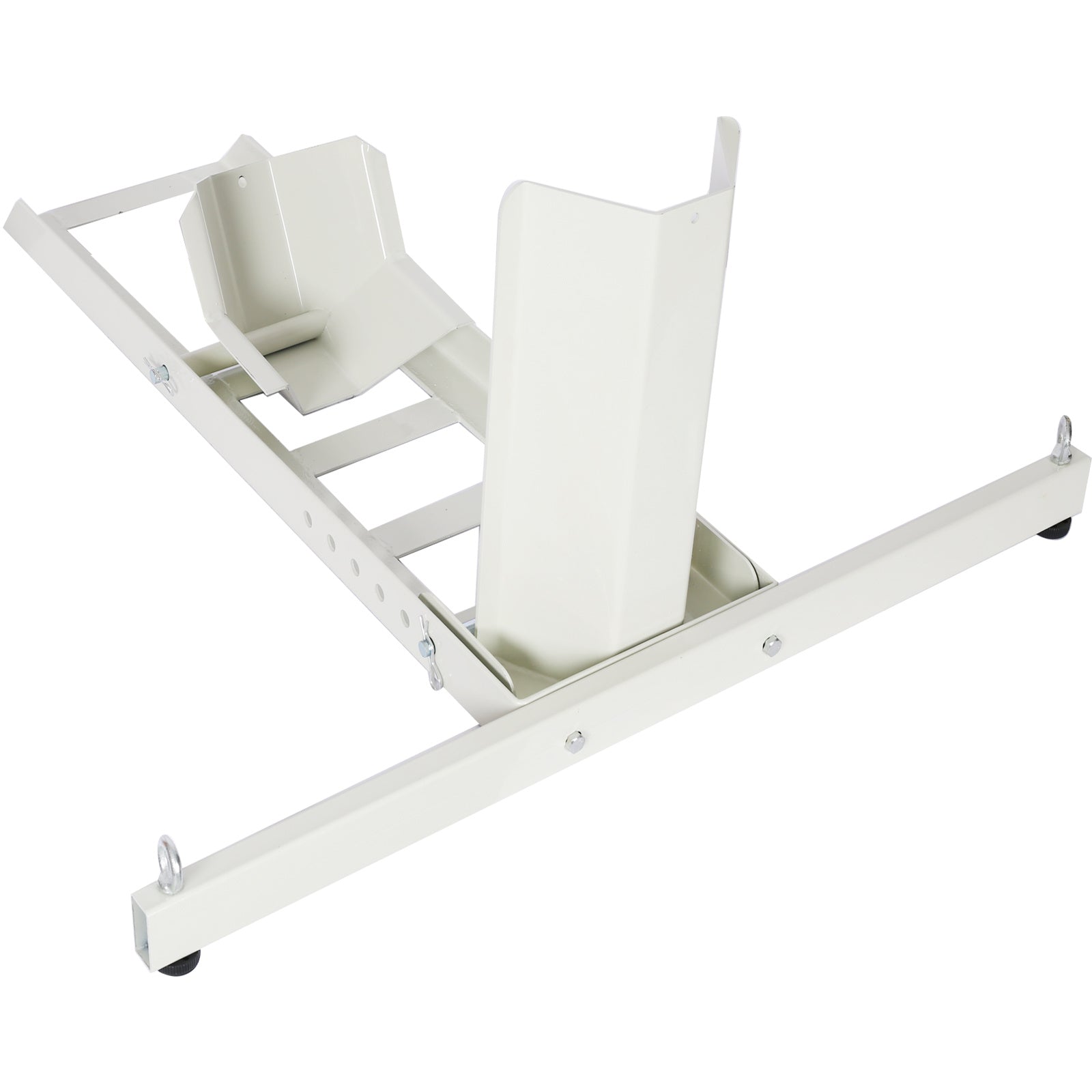 The plated steel construction of this solid motorcycle stand allows it to accommodate up to 1800 lb. while your bike stands in an upright position. The adjustable wheel lock fits front or rear motorcycle wheel sizes from 15 in. to 22 in. (80-127W). and a powder coat protects the stand from rust and corrosion. Tilting wheel adapter automatically secures motorcycle Two eye loops for convenient strapping Free-standing design can be mounted to floor, truck or trailer bed Adjustable cradle stop to fit most motorcycle wheels with 4 sets tie downs 2inx9.2ft