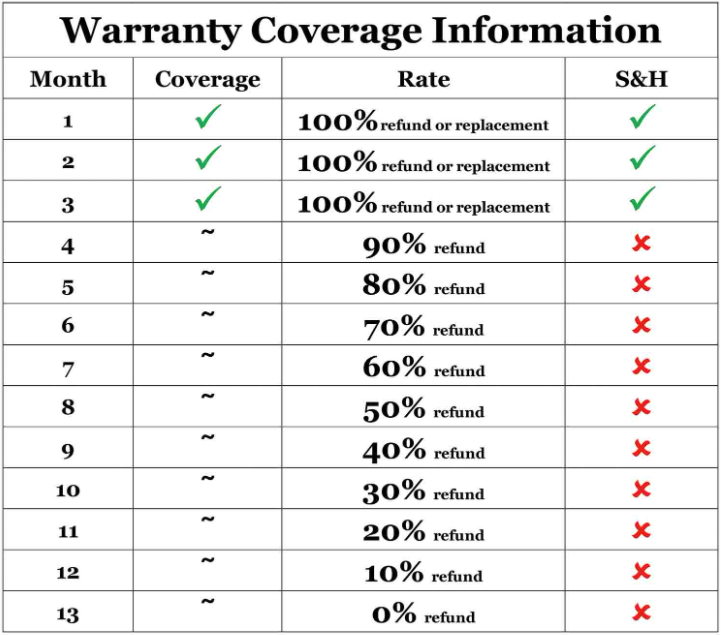 We reserve the right to request proof of purchasing and mechanical failing in the event of any warranty claim. And we aren’t responsible for additional repairs, damages (punitive or non-punitive), loss of time, or any other extraneous circumstances.