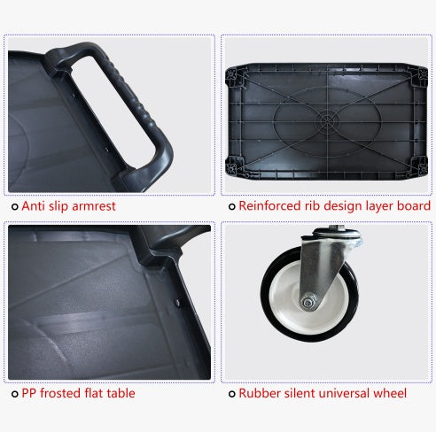 - The bottom is equipped with two universal wheels with brakes, 360-degree flexible steering, pushing and pulling freely and smoothly.