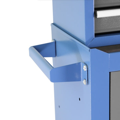 - 1 rolling tool cabinet on the bottom and 1 top box equipped with 3 drawers on the top. The whole tool chest can be disassembled into two parts and the top box can be placed into the large bottom box to save space or even carry it conveniently. For easy transportation, we will put the upper case into the bottom cabinet.