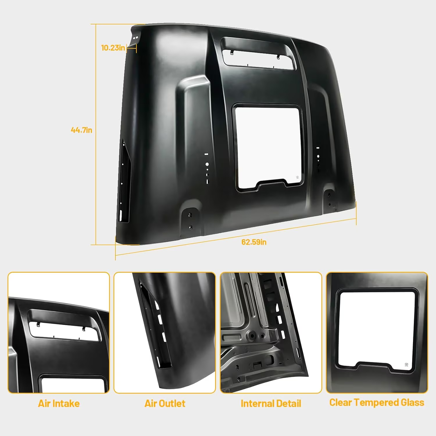 Compatible with 2018-2023 Jeep Wrangler JL JLU & 2020-2023 Gladiator JT (Not for Mojave&392 Model),the hood ensures a seamless fit. The hood's dimensions and interfaces are identical to the original, requiring no additional modifications or adjustments during installation, preserving the original appearance and structural integrity.