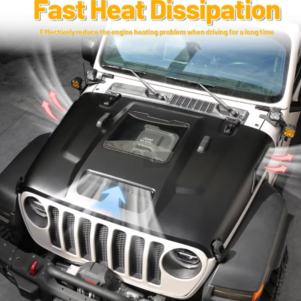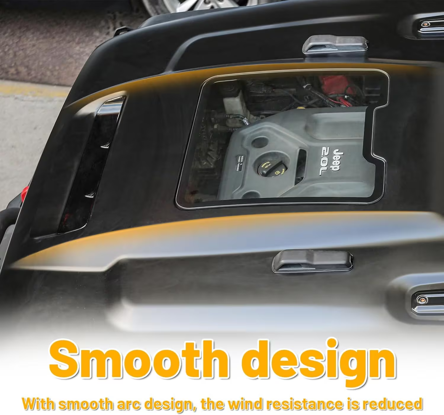 The hood is made of high-quality materials to ensure durability and long-lasting use. With careful design and craftsmanship, it perfectly fits the size and interfaces of the Wrangler, simplifying the installation process.
