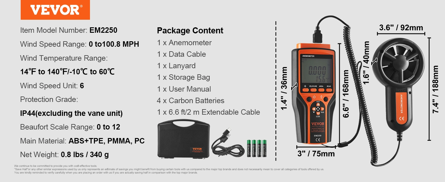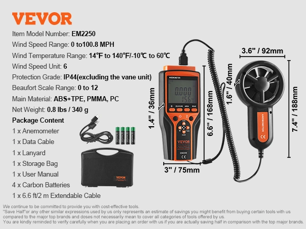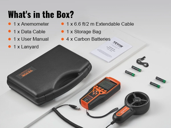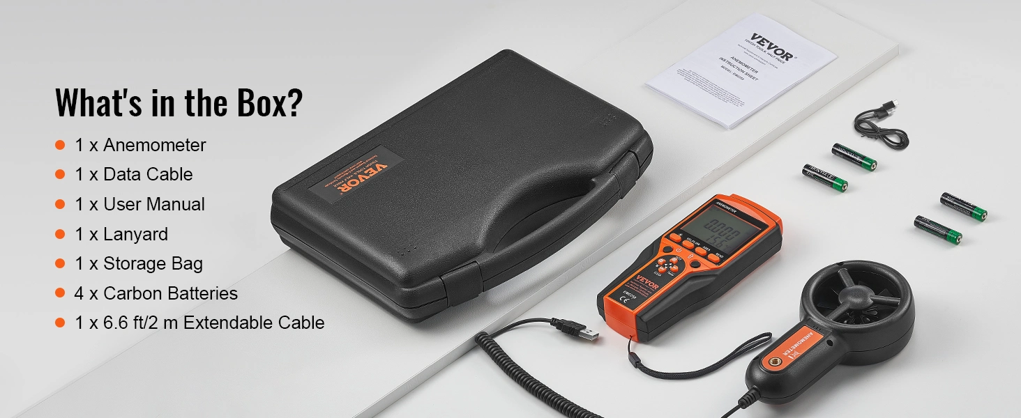 - Out-of-the-Box Ready: Our anemometer comes with 6.6 ft/2 m extendable cord, ensuring you have the reach you need to take measurements without limitations. Keep your anemometer secure with the included lanyard, ensuring it stays within reach. Safeguard your anemometer during transit and when not in use with the storage bag. Choose our air flow meter for a hassle-free experience from the moment you open the box.