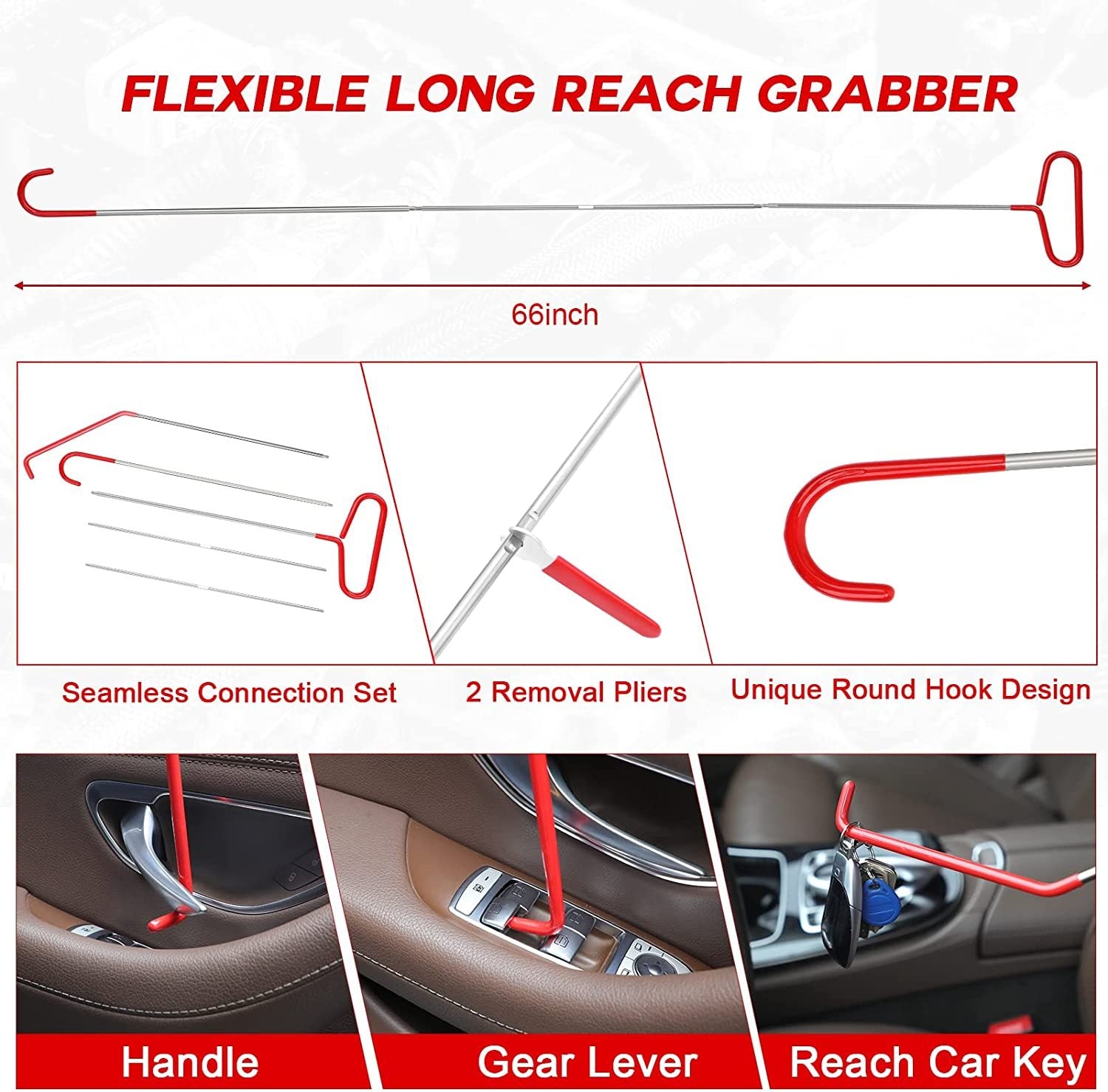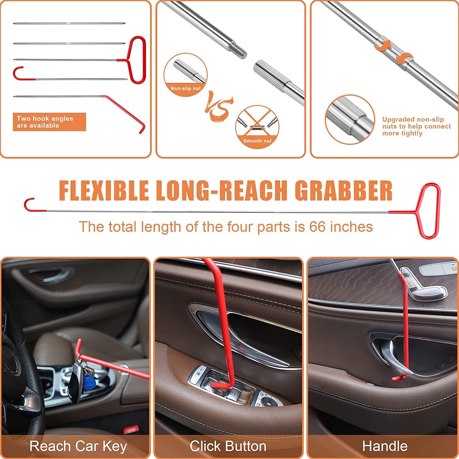 Stainless Steel Remote Hook Tool, Car Emergency Door Opening Tool Set, Oval Handle, Red Warping Piece Set, Wedge Airbag Wrench, Combination Tool