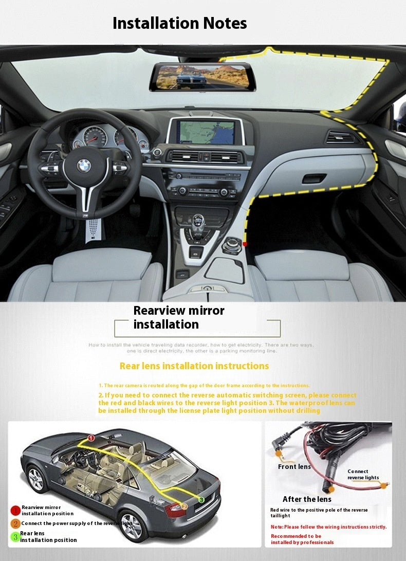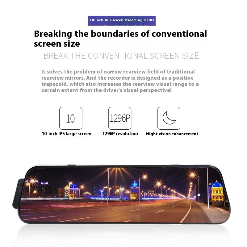 Streaming Media Rearview Mirror Tachograph 10-inch Full Screen Touch HD Night Vision Front And Rear Dual Lens Reversing Image