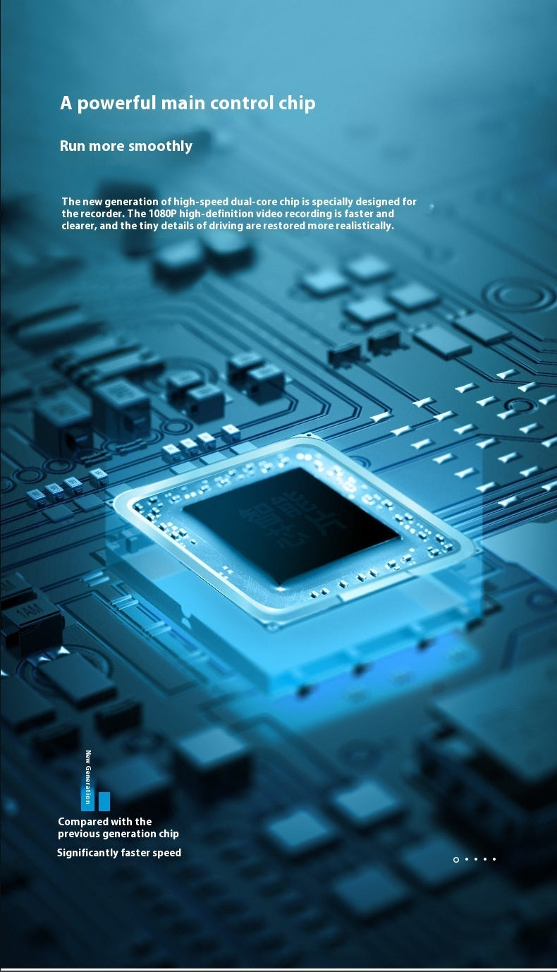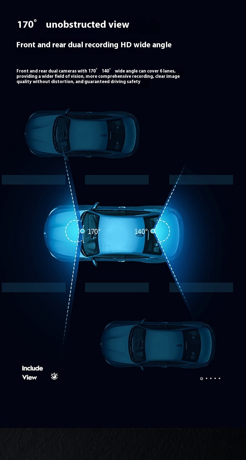 Features: reverse camera, motion detection, loop recording, night vision enhancement, front and rear recording