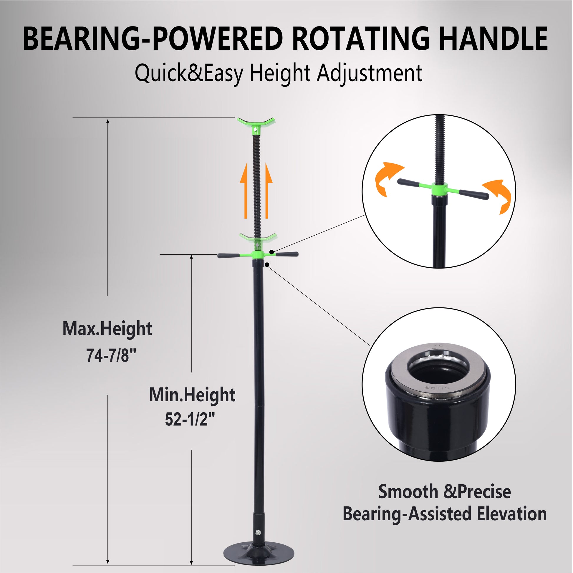 Easy Height Adjustment: Equipped with an ACME threaded rod, the bracket allows for easy height adjustment under load, with a minimum height of 52.5 inches and a maximum height of 74 7/8 inches. The swivel handle effortlessly bears the weight, making it simple to adjust and replace vehicle parts.