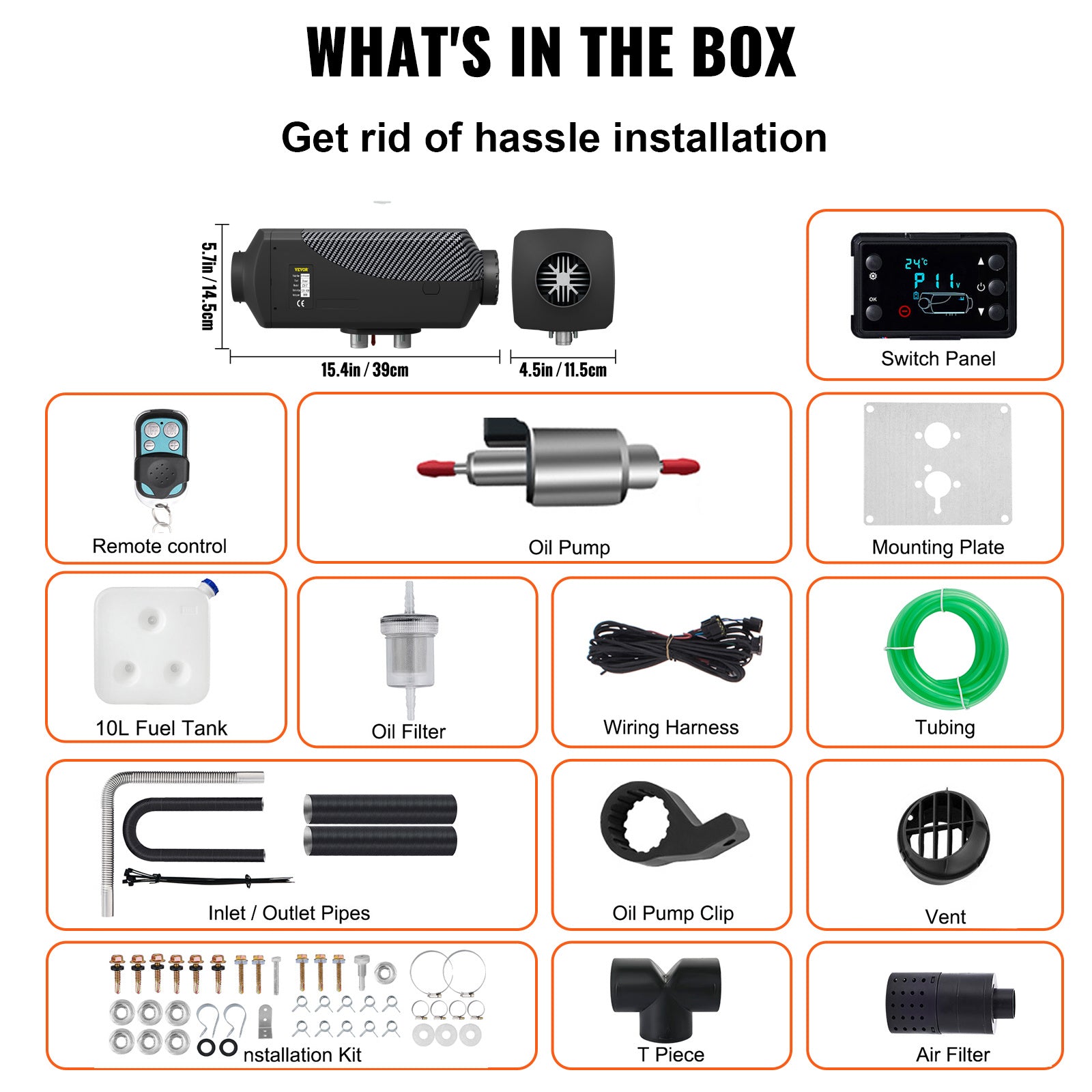 VEVOR 8KW Diesel Air Heater Muffler Diesel Heater 12V Remote Control Diesel Parking Heater With LCD Switch For Car Trucks Motor-home Boat And Bus