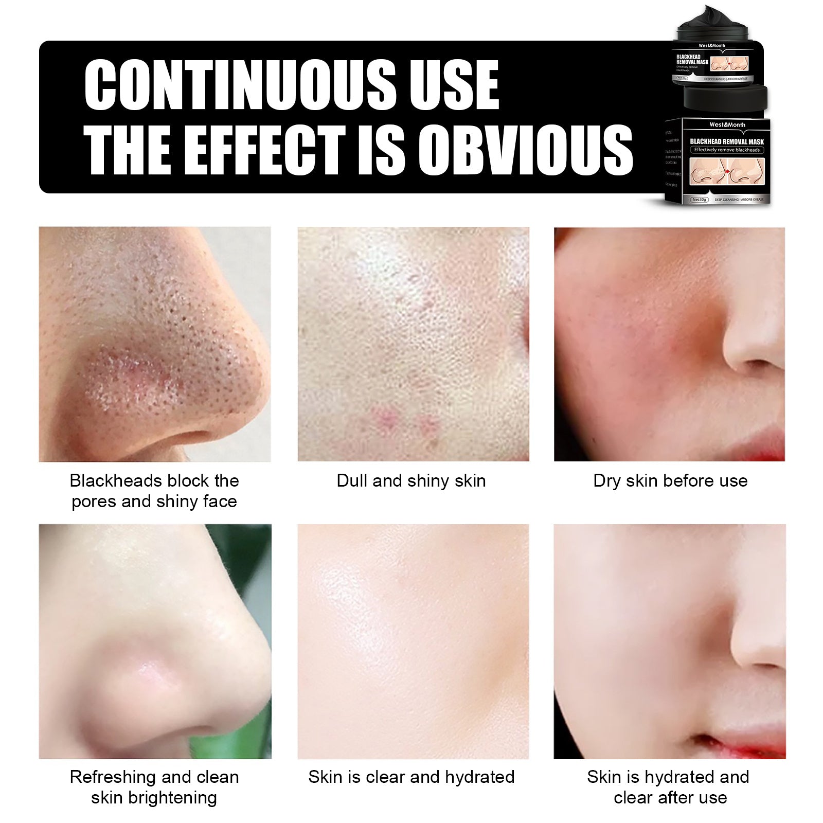 It can effectively remove blackheads, clean the excess grease, deep cleansing, shrink pores, tighten skin.